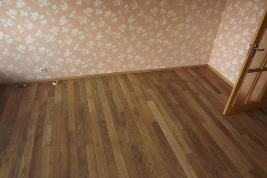 Pirms dēļu ieklāšanas, mums gan nācās veco parketu pārslīpēt. Būtībā, tika noņemta lakas kārta, bet pats parkets nedaudz sašvīkāts, lai nodrošinātu labāku saķeri līmei.